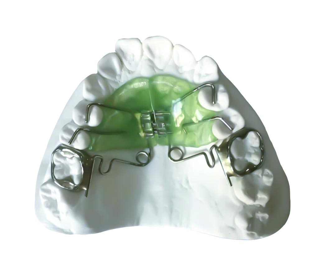 ஊசல் சாதனம் தோராயமாக 5 மிமீ வரம்பில் உள்ள மாக்ஸில்லாவில் மோலார் டிஸ்டலைசிங் விளைவை உருவாக்குவதை நோக்கமாகக் கொண்டுள்ளது. ஒரு பெரிய அக்ரிலிக் பொத்தான் நங்கூரமிடும் பாகமாகப் பயன்படுத்தப்படுகிறது மற்றும் ஸ்பிரிங்ஸ் அல்லது ஸ்க்ரூக்கள் மோலர்களுக்கு எதிராக ஒளி மற்றும் தொடர்ச்சியான சக்தியை உருவாக்குகின்றன. நங்கூரமிடும் கூறு இருமுனைகள் அல்லது முதன்மை கடைவாய்ப்பால்களுக்கு பட்டைகள் அல்லது பிணைப்புடன் பாதுகாக்கப்படுகிறது.
